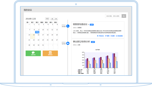 可管理维护企业通讯录,方便会议的组织邀请;临时紧急会议可在通讯录中选择参会人后立即发起会议。